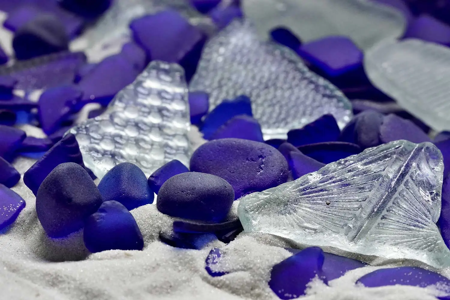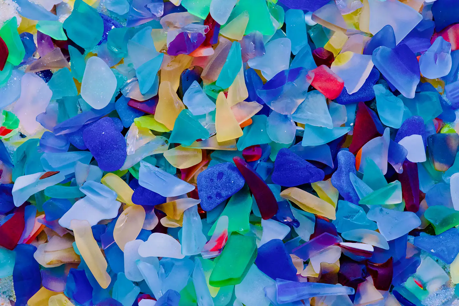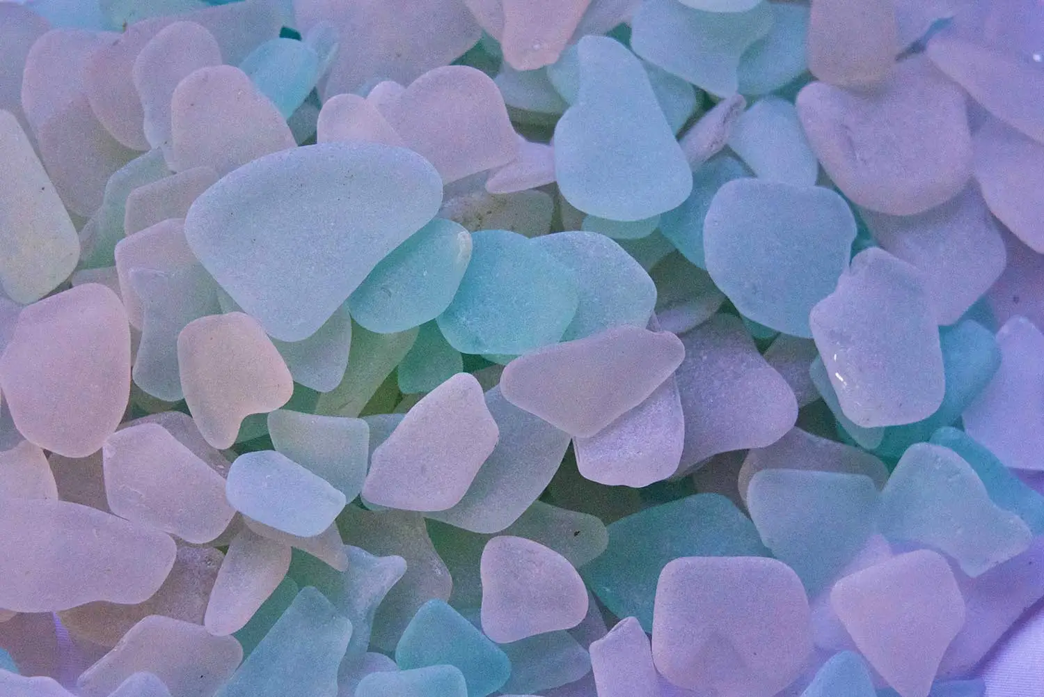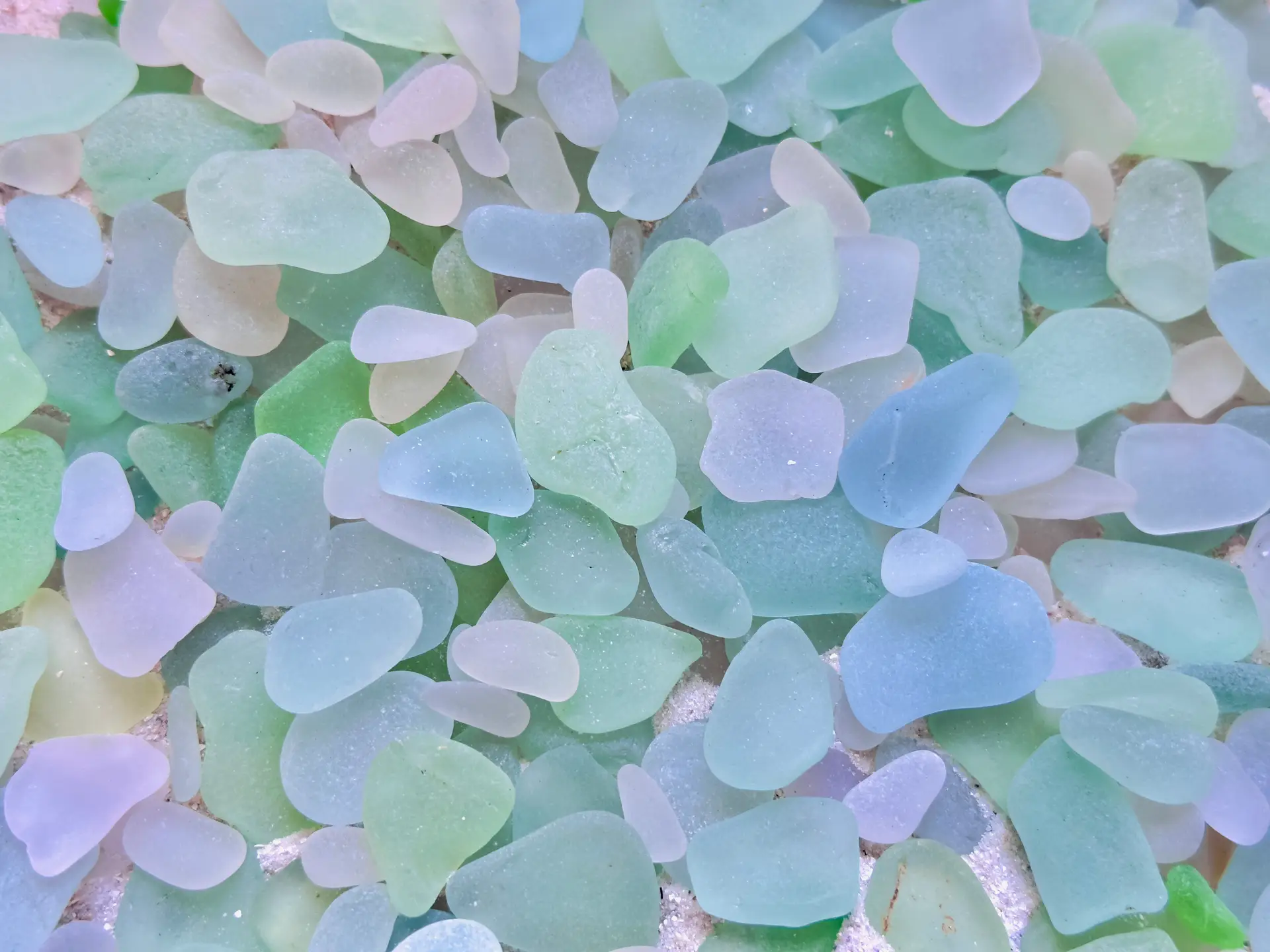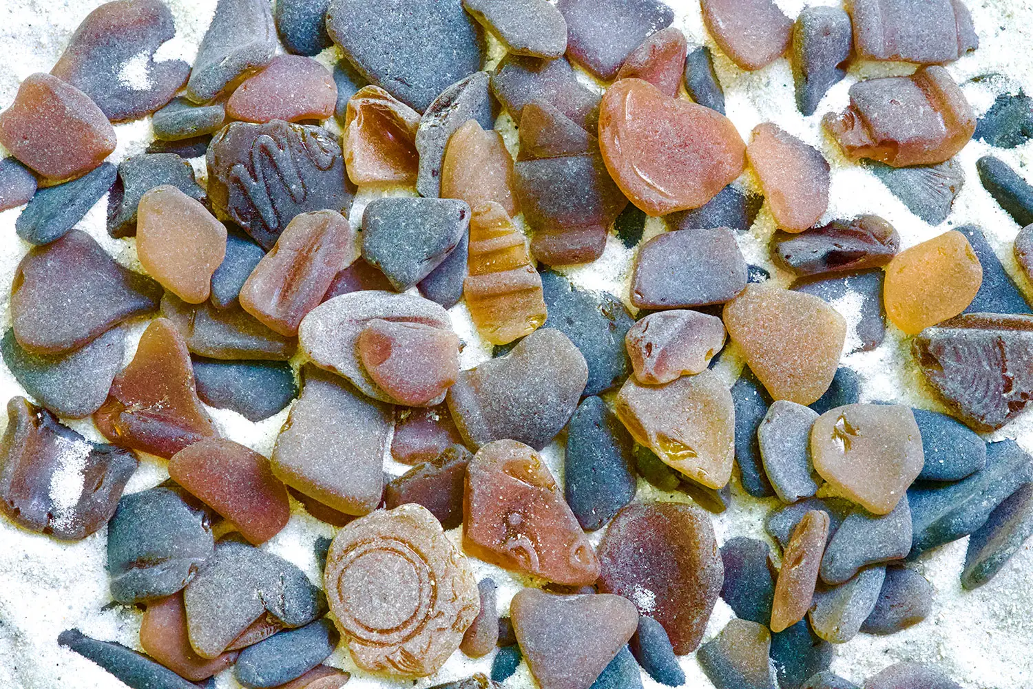 Collections of sea glass found on beaches in Florida, Italy, the Caribbean and England.