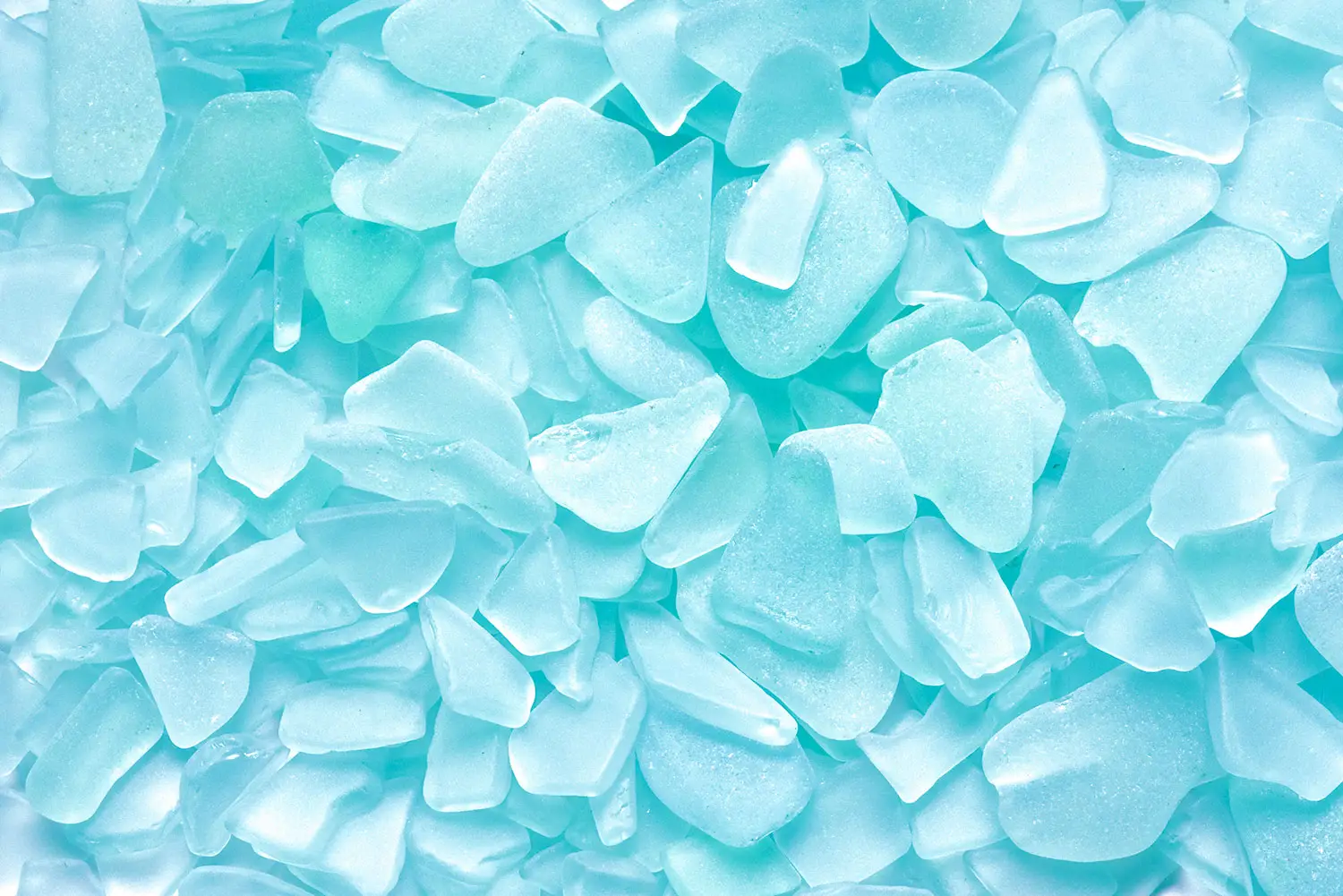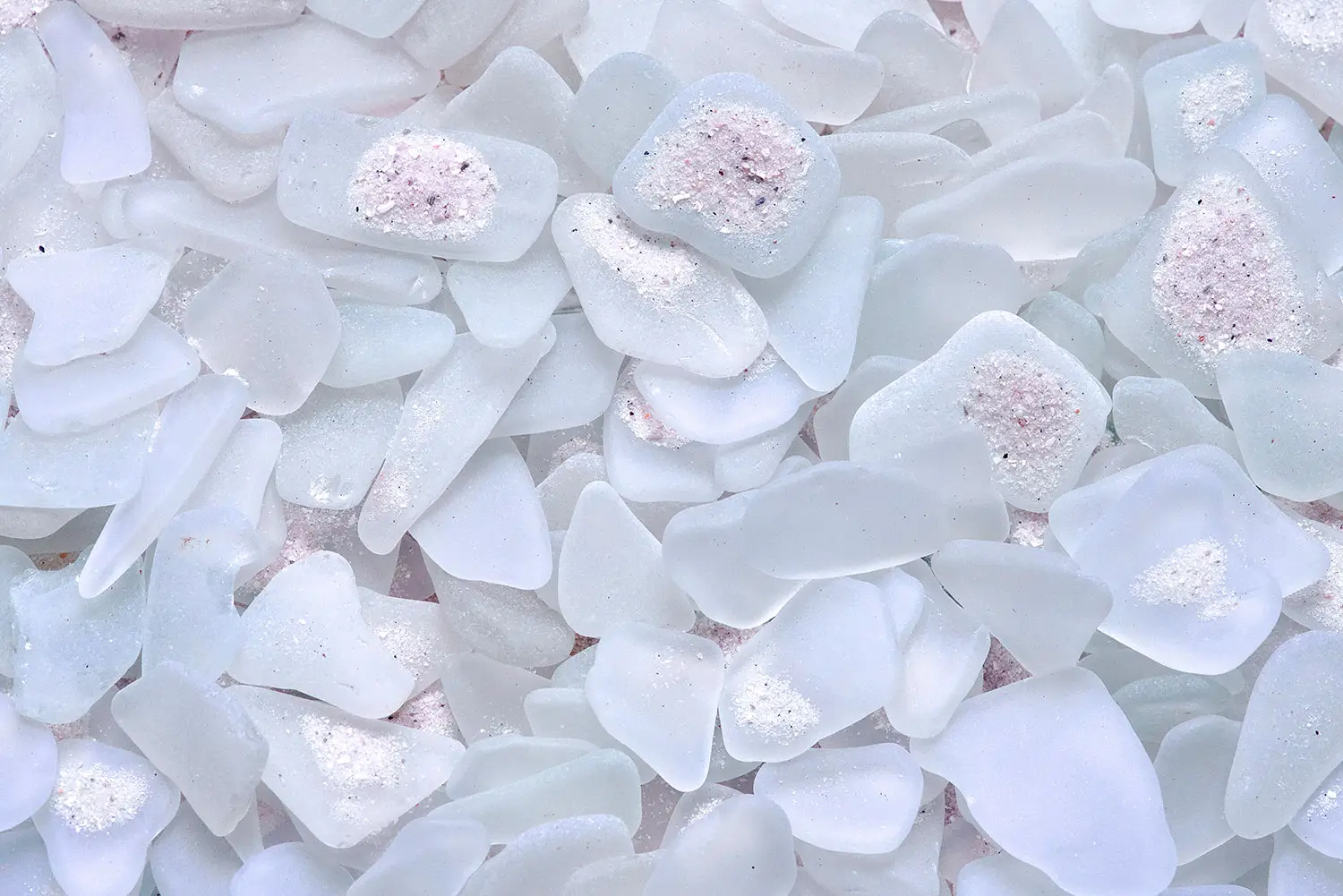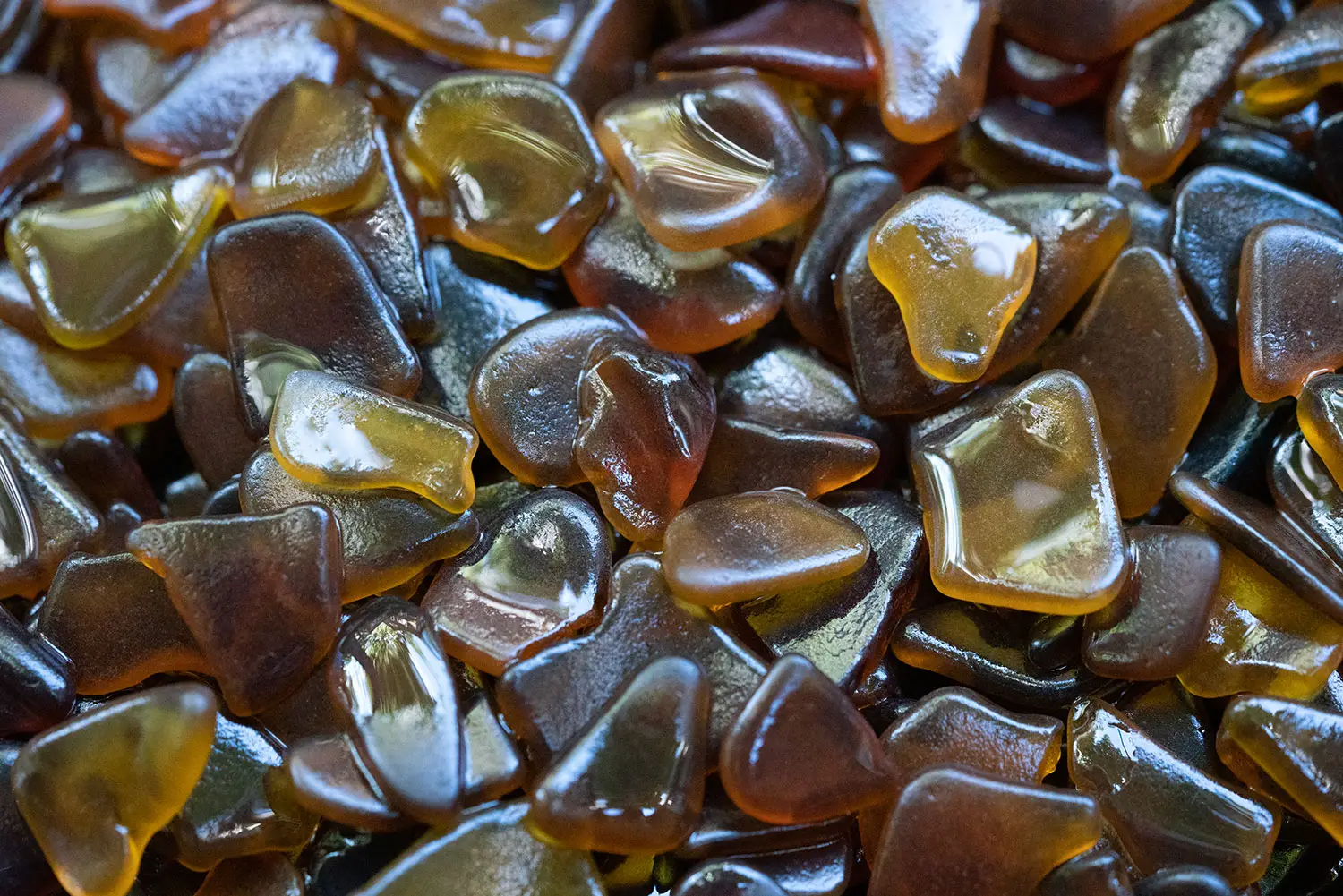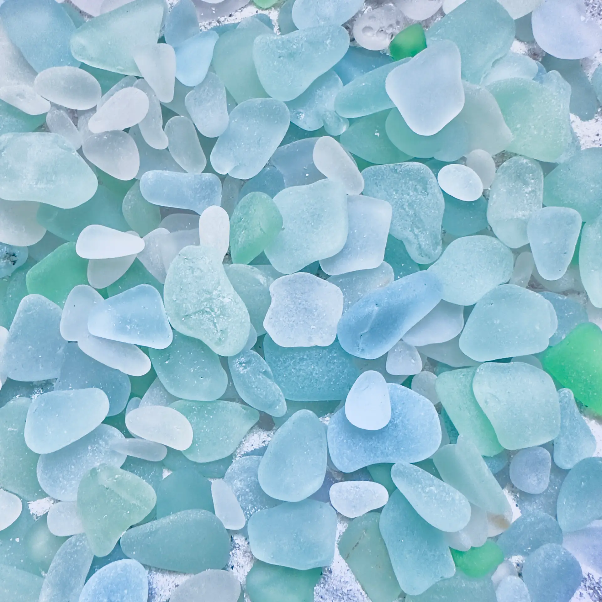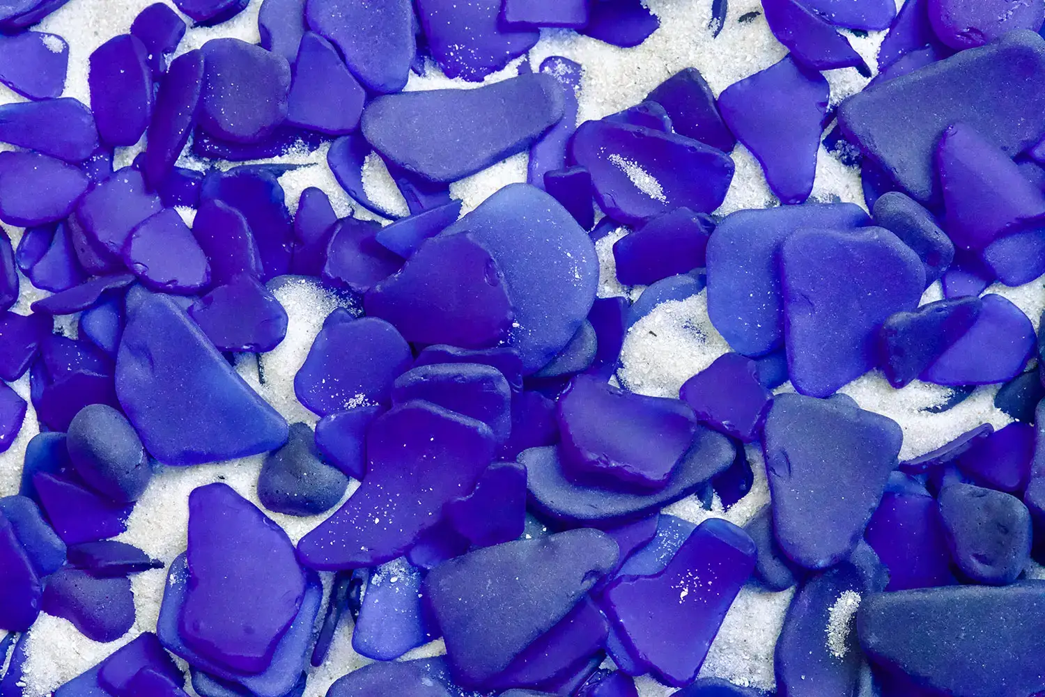 Collections of sea glass found on beaches in Florida, Italy, the Caribbean and England.